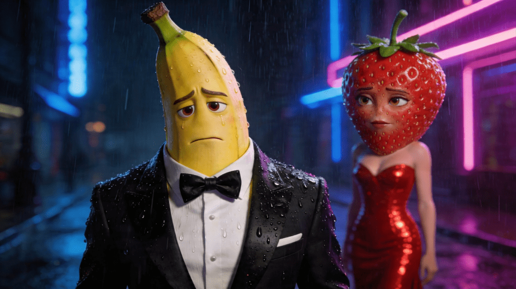 El absurdo actúa como escudo emocional. Ver a un plátano llorar activa en el cerebro una respuesta dramática casi idéntica a la de ver a un personaje humano, pero sin el peso de la identificación real. Te engancha sin que te sientas ridículo por engancharte. Es el mismo mecanismo que hace que ciertas series animadas para adultos funcionen tan bien.