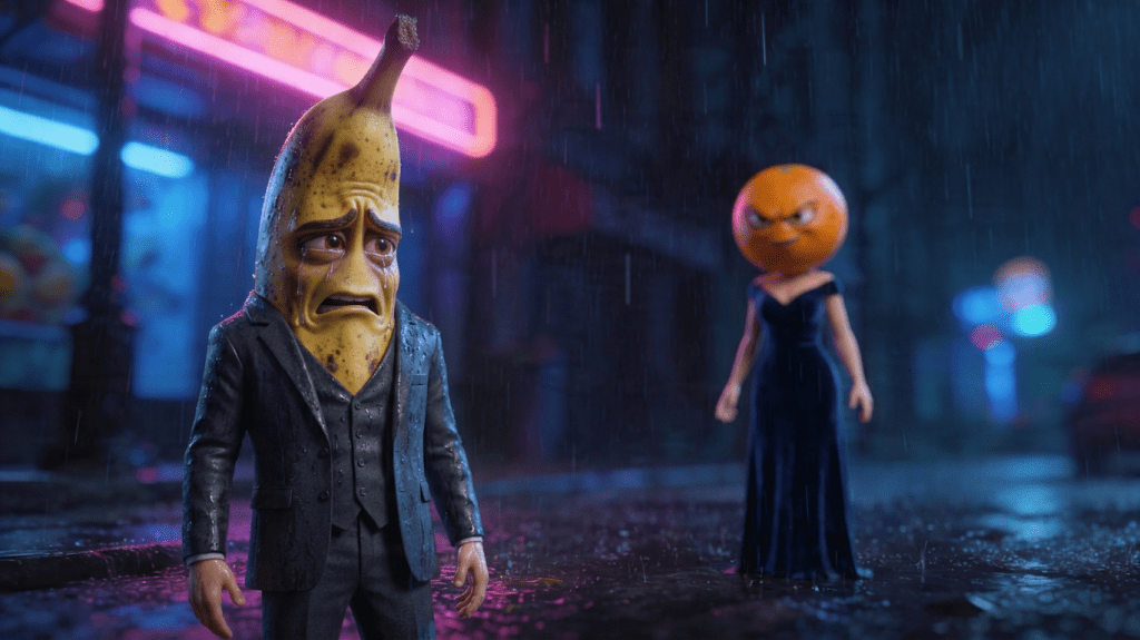 El personaje más conocido del género es Banana Negra, un plátano maduro e infiel que protagoniza un triángulo amoroso junto a Naranja, su pareja, y Limón, la amiga traidora. Una trama que cualquier espectador reconoce al instante… envuelta en el absurdo visual más inesperado.